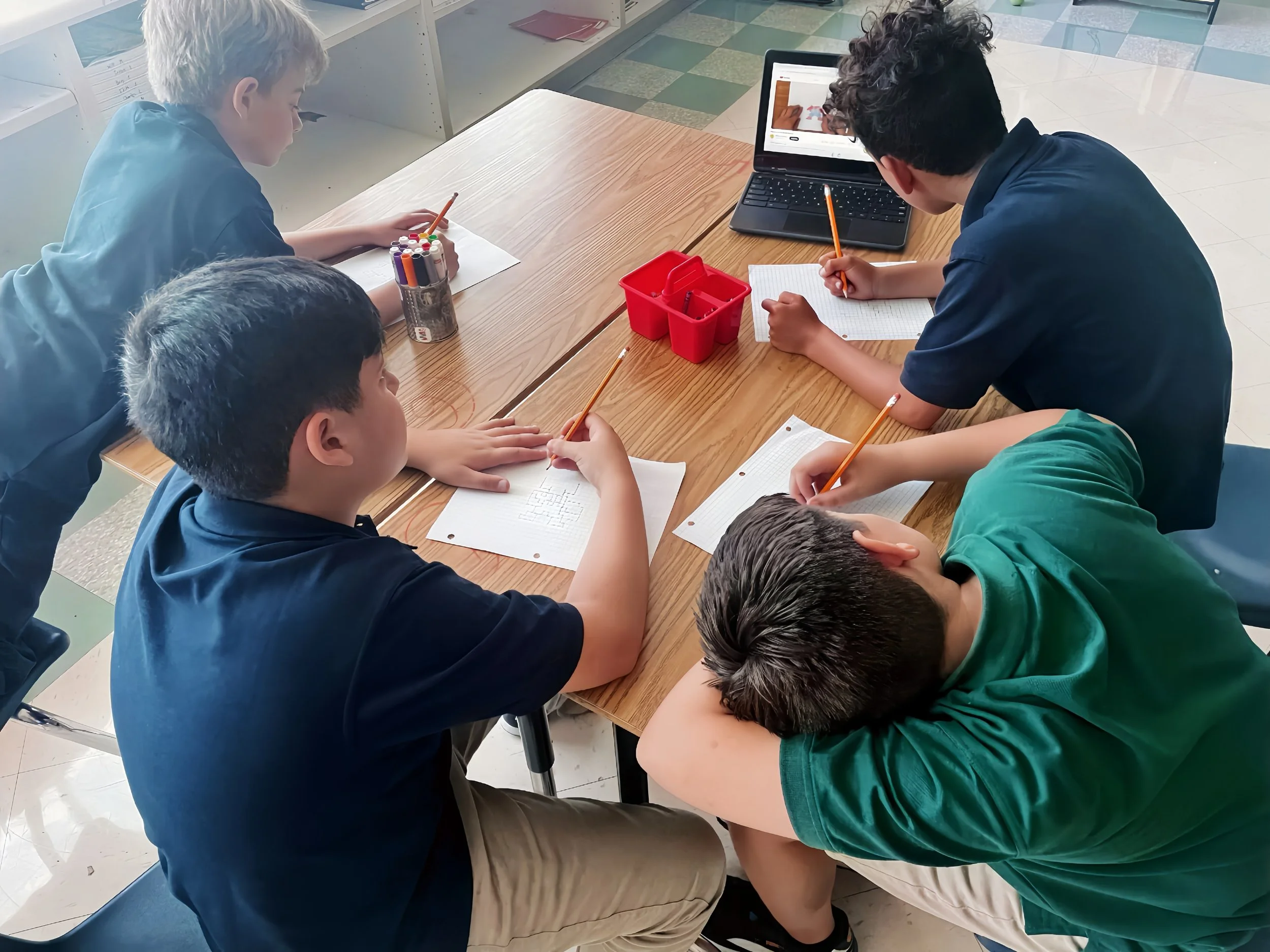 Our math curriculum kinder through eighth grade is Ready Math, a rigorous, blended learning curriculum.